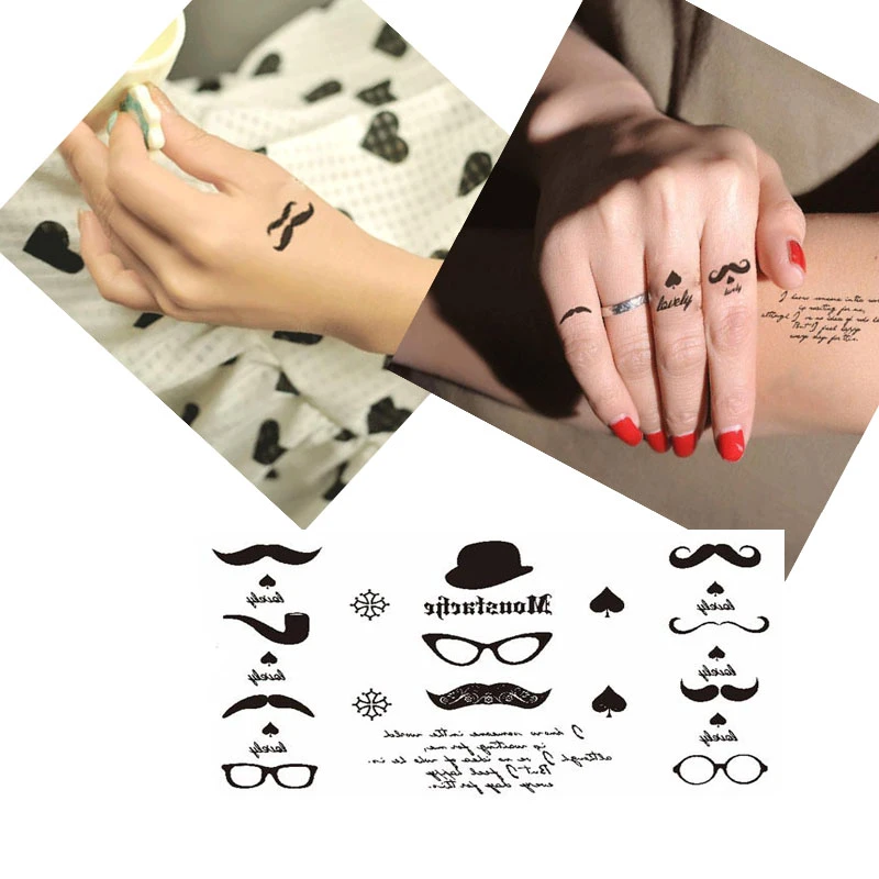 Bittb 5 Pc Pequena Tatuagem Temporaria Oculos A Prova Dwaterproof Agua Bigode Chapeu Spade Tatuagem Adesivo Falso Arte Do Corpo Braco Manga Colar Papel Tatuagens Temporarias Aliexpress