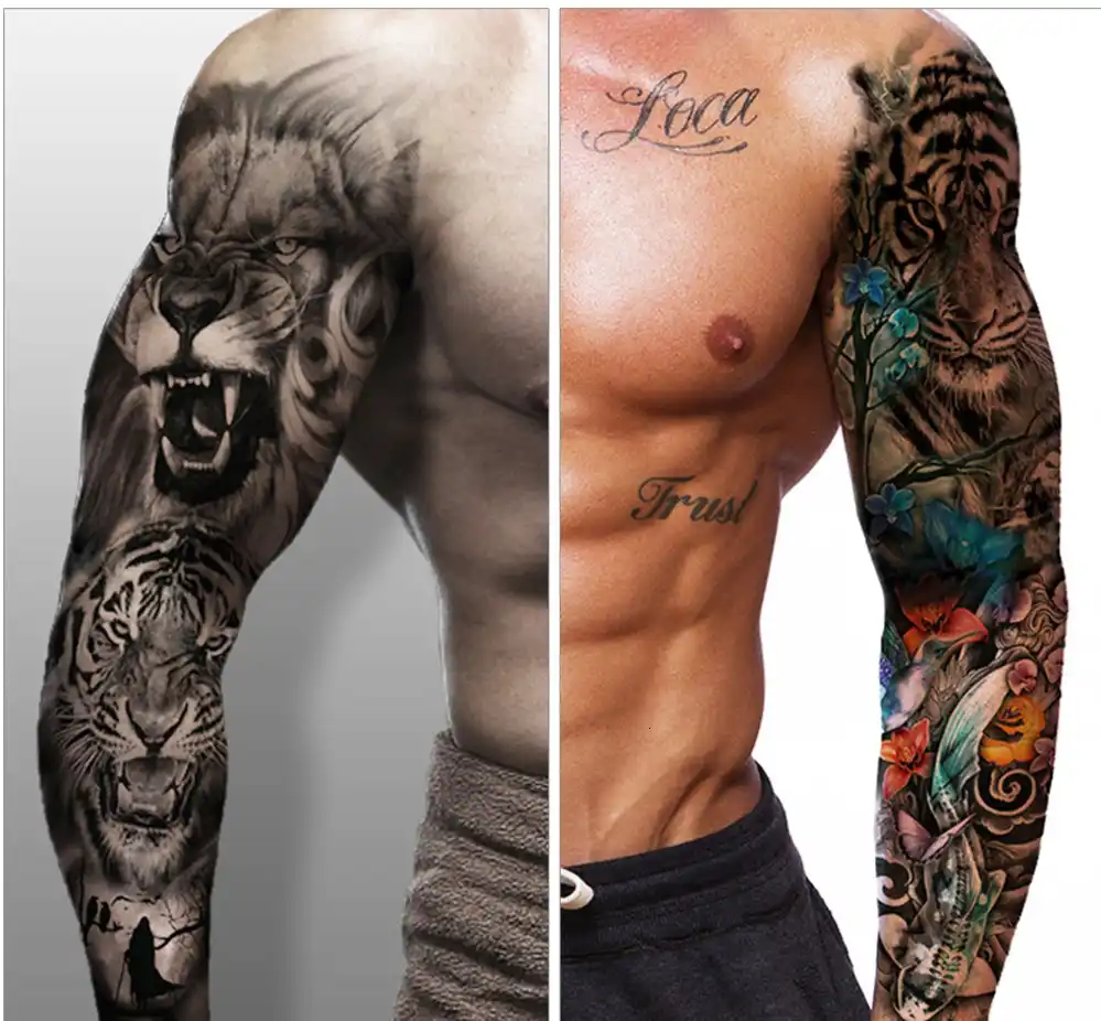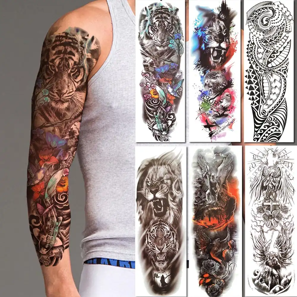 Braço completo de tatuagem. Visibilidade de tatuagens aqui também pode adicionar ao seu fascínio. Promoções de tempo limitado Devoluções fáceis. Cuidados com as tatuagens.