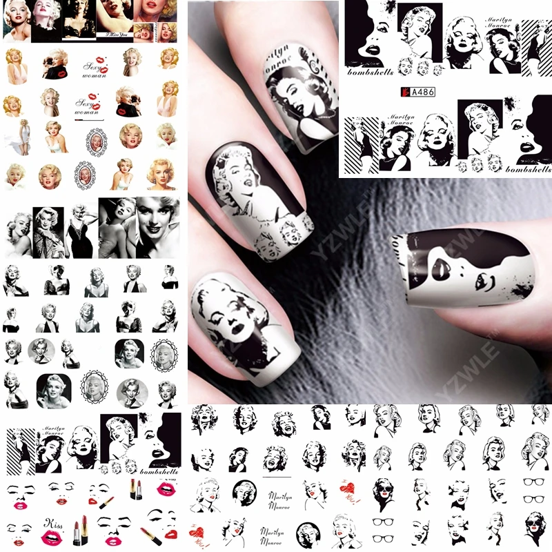 12 Folhas De Agua Decalque Da Arte Do Prego Decoracoes Etiqueta Do Prego Tatuagem Cobertura Completa Beleza Marilyn Monroe Decalques Manicure Suprimentos A481492 Water Decals Manicure Suppliesnail Art Decorations Nail Aliexpress