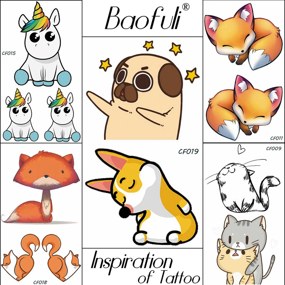 Baofuli Filhote De Cachorro Unicornio Gato Dos Desenhos Animados Tatuagem Temporaria Raposa Pintura Arte Tatuagem Estrela Falsa Tatuagem A Prova Dchildren Agua Corpo Braco Perna Criancas Tatuagens Temporarias Aliexpress