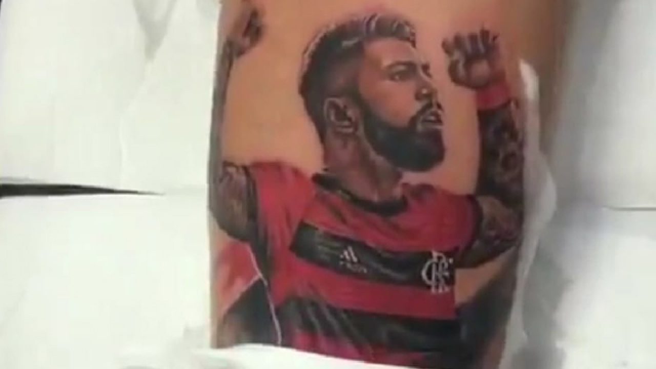 Torcedor Faz Tatuagem Da Camisa Do Flamengo Em Tamanho Real