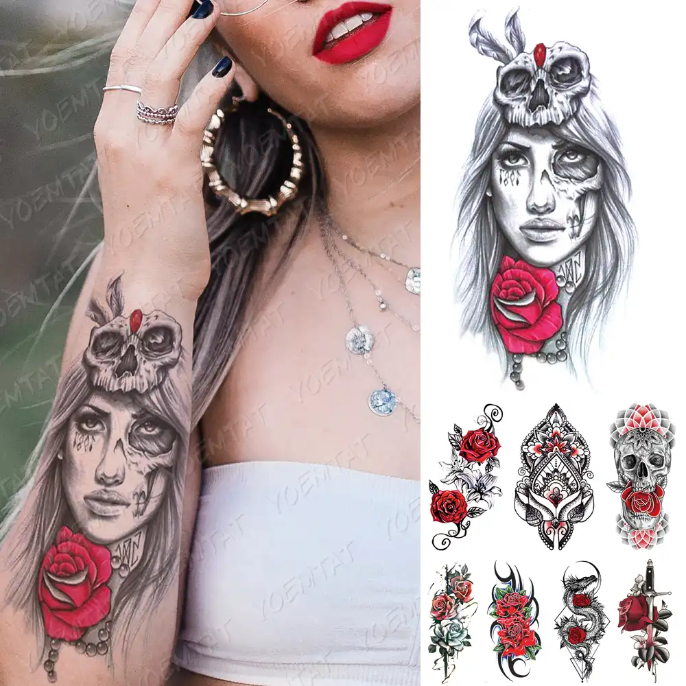 Tatuagem Temporaria A Prova Dwaterproof Agua Adesivo Cranio Rosa Menina Zumbi Tatuagens Rosa Coracao Seta Arte Do Corpo Braco Falso Manga Tatoo Tatuagens Temporarias Aliexpress